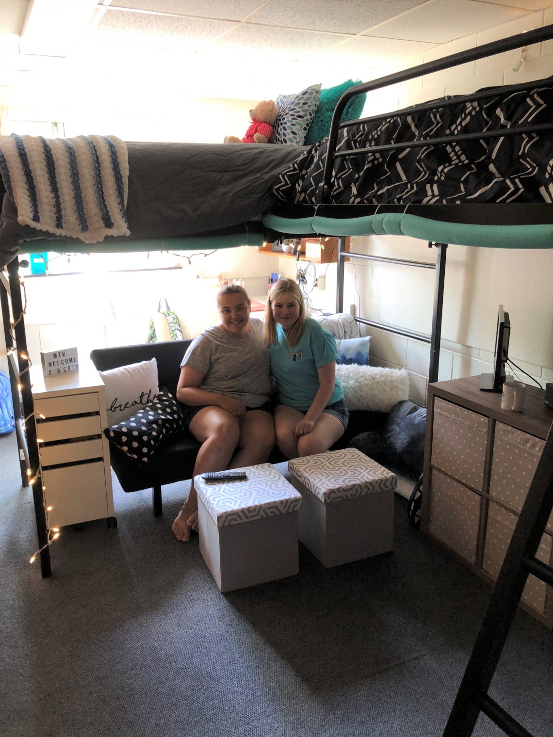 Welcome to Bergstrom Hall room 207! My name is Cassie and my roommate’s name is Katie. We are both freshmen at St. Norbert College and live in the honor’s dorm for all freshman. Welcome to our home away from home! Before we left, the pile of items to bring seemed daunting, but with a packing engineer dad, everything fit into the truck! Under Our Beds Both of our favorite colors were shades of blue, so we decided on a white, gray, and black room with a teal blue accent color. We also both decided to loft our beds to give us the most room. Under the beds, we placed the…