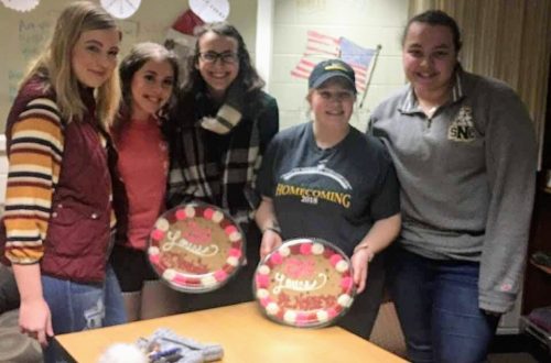 After a stressful and long week of classes, Friday night was a welcome feeling. I started off my night with learning about Chiara (the Catholic Women’s Group on campus) and then eating a Parmesan Chicken Melt at Phil’s for dinner. Afterward, our floor bonded by decorating all the windows to our lounge to represent our majors. Ally, Lauren, and I helped to create the Computer Science/Graphic Design/Math window. Ally drew most of it because neither I nor Lauren
