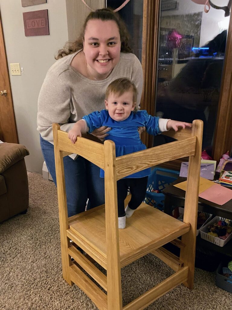 At the beginning of February, I got to go and see my goddaughter Dottie for her first birthday party. Dad and I made her a step stool to help out in the kitchen. I loved being able to see her again and meeting her younger sister Monica for the first time!