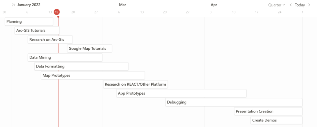 The Gantt Chart focuses on specific dates and how long each section of the project is going to take, making it very similar to a timeline.