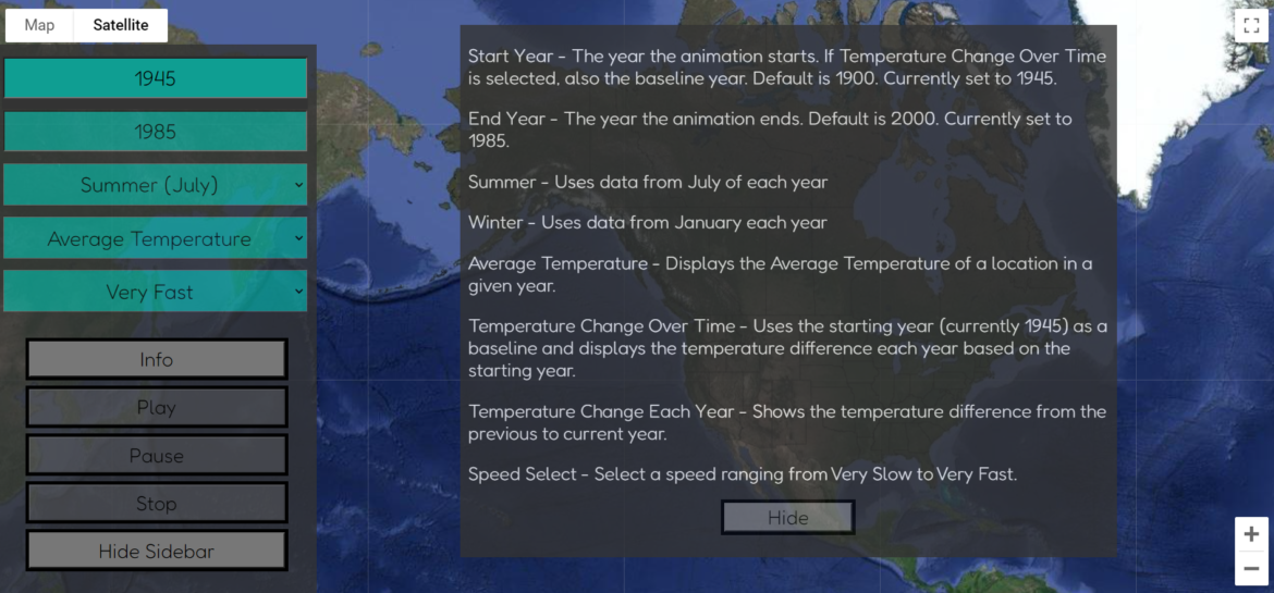 This week focused more on fixing the little errors of my site, but also allowed me to get feedback from the class and add some of the new features from my walkthrough presentation. New Features After walkthroughs, there were a few new features I wanted to add. I also asked the class for more feedback mainly on some user interface issues I was having and fixed some things based on that conversation as well. Adding Temperature Change Each Year The main feature I added was…Continue Reading “Week 11: Adding More Features”