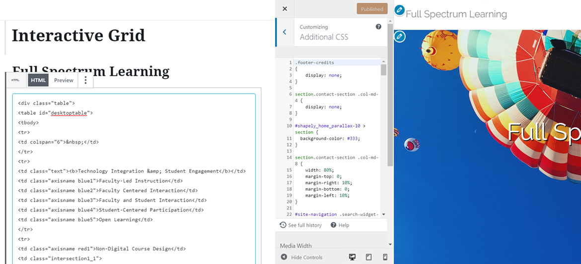 This week focused on continuing to update and edit the long videos of professors and students for the interactive grid and course pages. The rest of the week was spent trying to update my sub-domain and also creating ideas for the Full Spectrum Learning Site. Ruthie sent me an awesome YouTube tutorial that explains each step in making a site with Elementor. I tried to update my sub-domain using these tricks. However, I encountered a bit of an issue. It is very hard to use…Continue Reading “Week 17: Updating the Website”