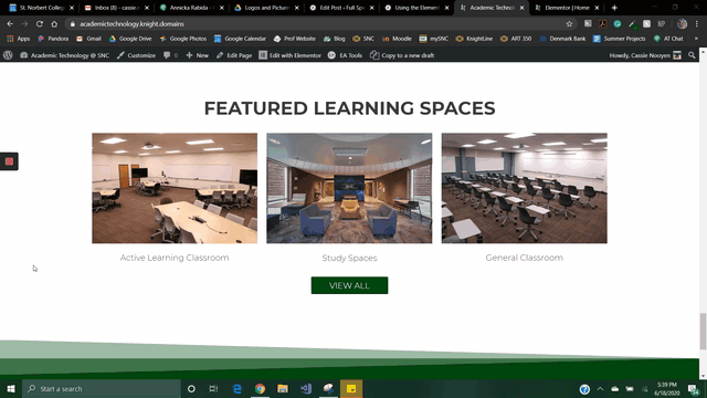 There are over 30 widgets in the free version of Elementor including text editors, columns, buttons, music, code, icons, and maps. The pro version unlocks access to many more widgets. I’ve personally never used the pro version and have found the free version to be able to do more than enough. Below are some of my favorite widgets/features of Elementor and a variety of example websites from Tech Bar students at SNC all using Elementor as their base.