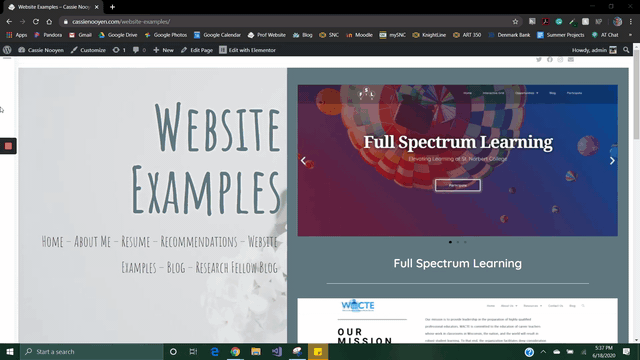 Below are examples of sites made with Elementor including blogs, student organizations, initiatives on campus, and student portfolios. Click on the name of the website to view the full site.