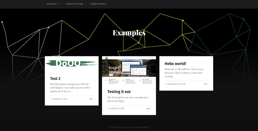 There are a lot of changes I still would like to make. One of the first things I will be working on is limiting the amount of posts displayed and displaying site categories on the home page. The Garfunkel theme does not allow widgets on the home page so I need to find a way to sort submitted site types (right now I am doing this through the menu bar).
