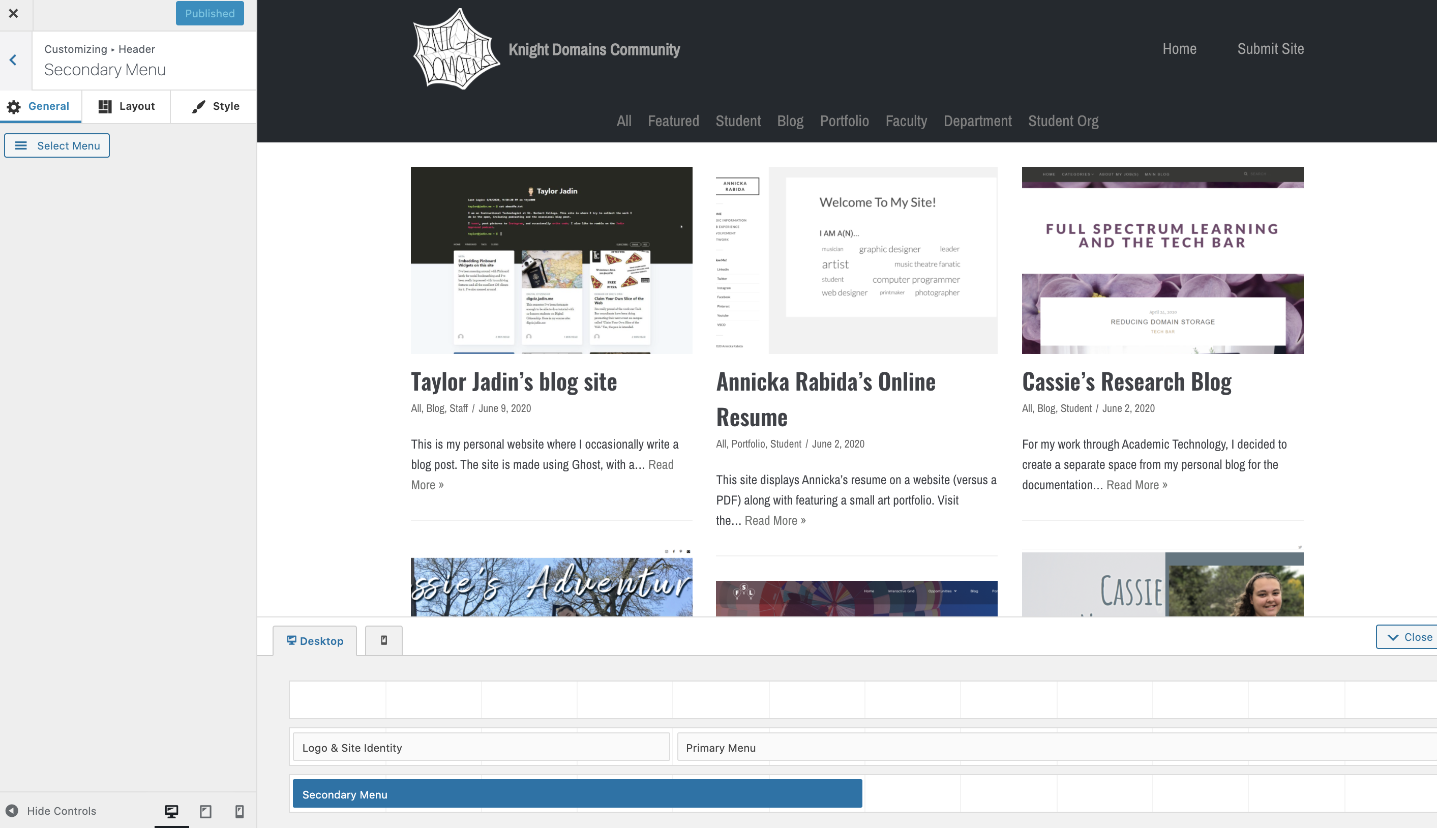During my Freshman year I’ve had the opportunity to work on the Knight Domains Community (KDC) site for my Domain of One’s Own fellowship. At the beginning of the year I knew the basics of web design but through this fellowship I have developed WordPress skills and learned about the possibilities domains and digital tools offer.