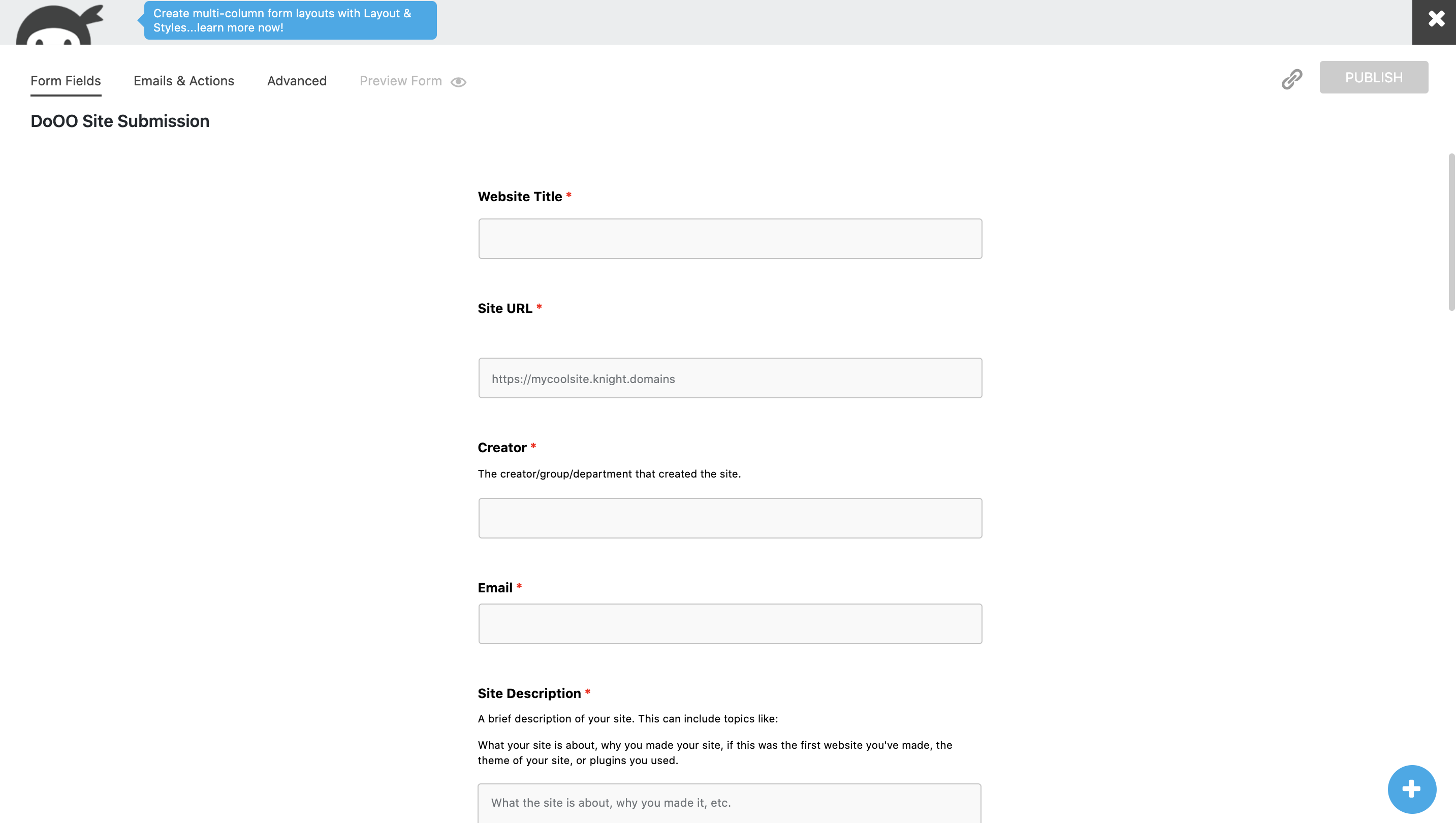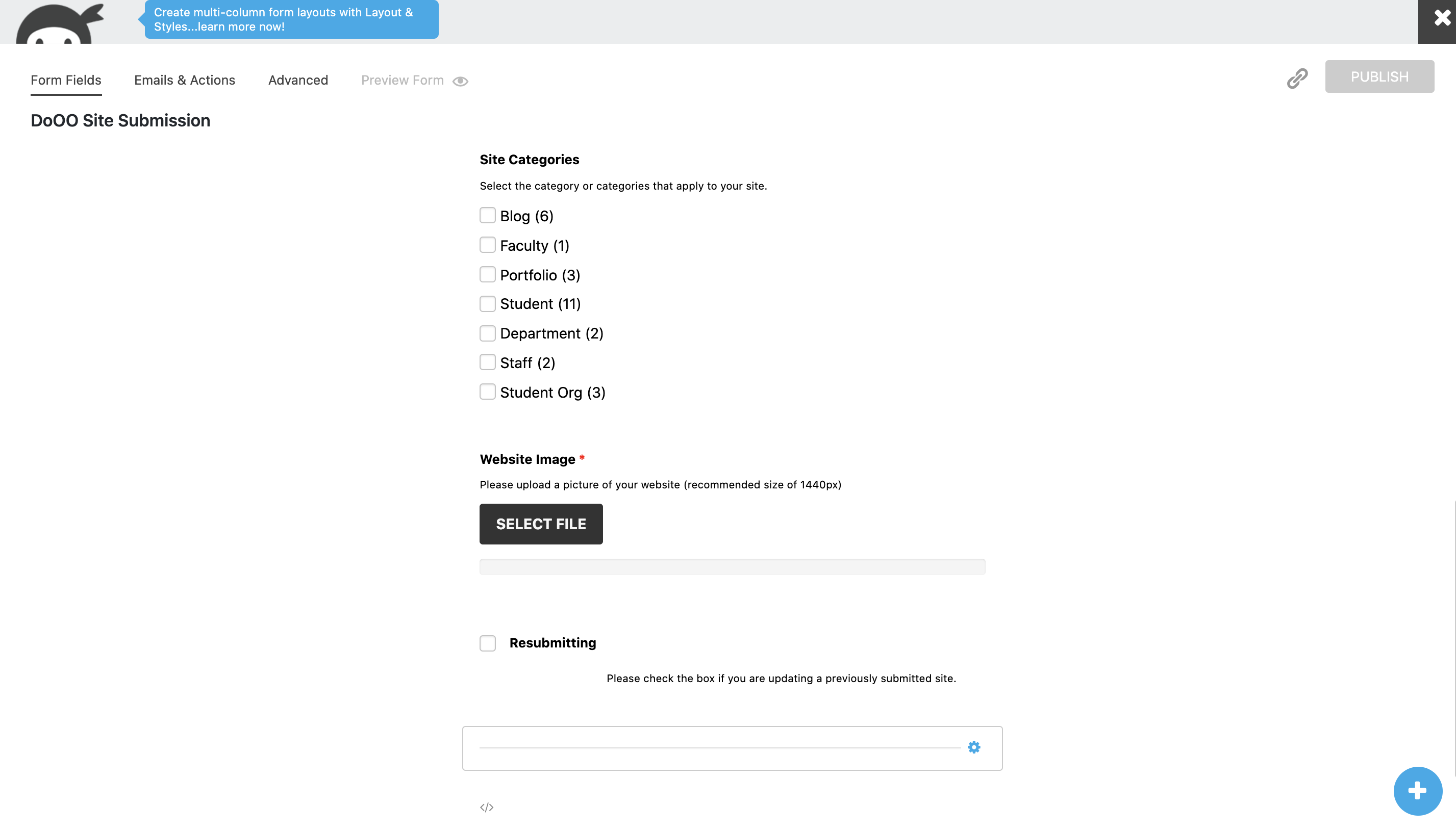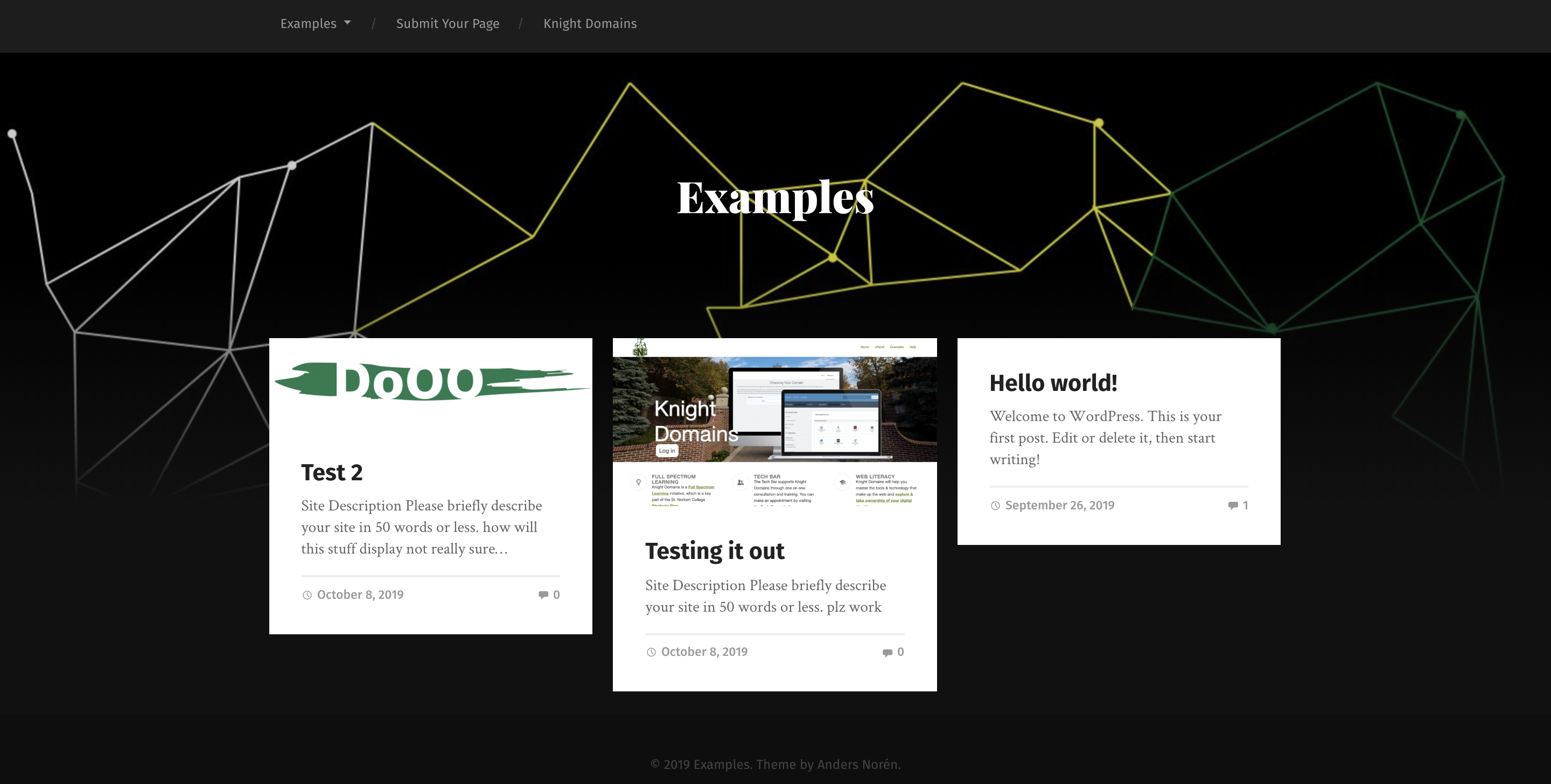 The goal of the KDC page was to exhibit websites built by the SNC community and to have people submit their sites without requiring a login. This presented my first challenge: finding a theme or plugin to do this.