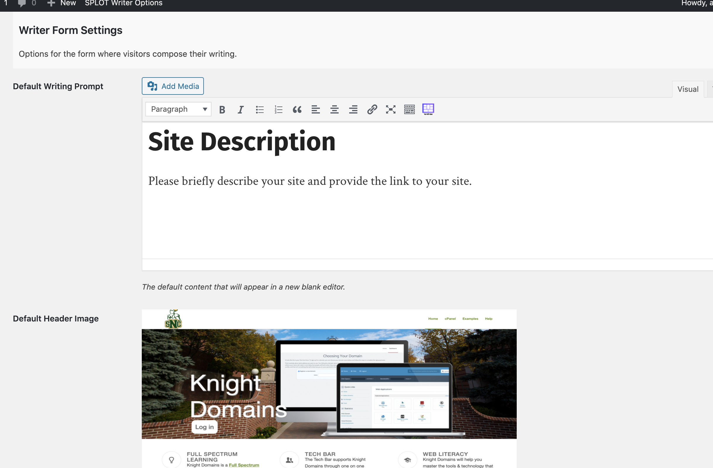 The first themes I tried were by SPLOT: SPLOT Writer and Tru Collector. Both of these themes created a “form” page that allowed people to submit content. The KDC page is inspired by a site that used SPLOT Writer to curate posts. Although these themes were not as customizable as I wanted, they helped me discern what was needed for the KDC submission form (the ability to customize field descriptions and capabilities).