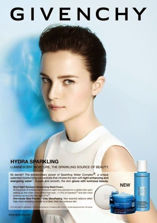 This is an ad for Givenchy and their Hydra Sparkling Moisturizer Sex Role Perspective This ad reinforces and resists stereotypical feminine characteristics at the same time. The woman…