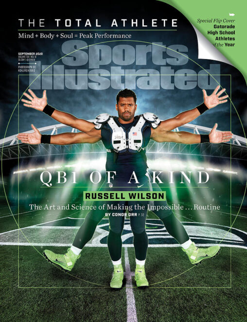 In this 2020 issue of Sports Illustrated, NFL quarterback Russell Wilson is presented on the cover using two techniques to portray a stereotypical male using the sex…