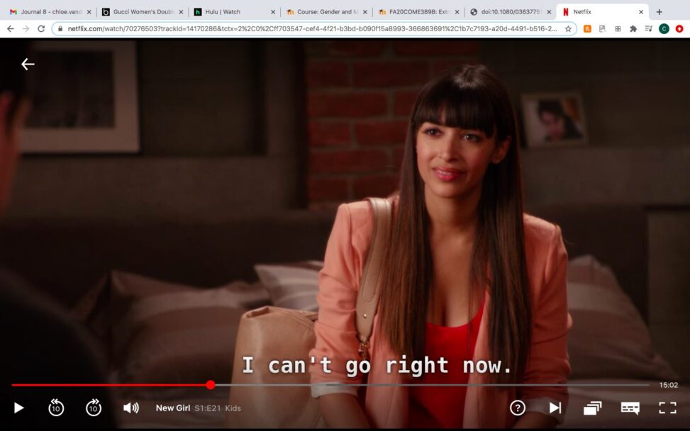 In episode 21 of season 1 of New Girl, it starts of with basic Gender stereotypes. Schmidt is ranting to Winston and brings up, “do you think she wants something more than sex and is finally becoming a girl?”, as he is talking about CeCe. This is a basic gender stereotype because Schmidt is assuming woman get to attached and their lives revolve around the man. CeCe is breaking stereotypes when her and Schmidt get into a fight and she becomes more assertive and she is the leader in the relationship right now.
