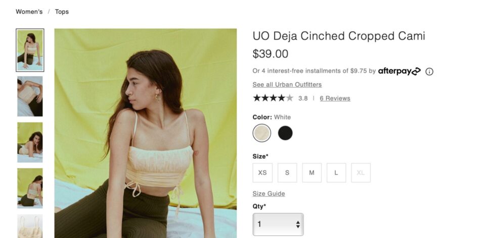 Image Credit: https://www.urbanoutfitters.com/shop/uo-deja-cinched-cropped-cami?category=womens-tops&color=010&type=REGULAR&quantity=1