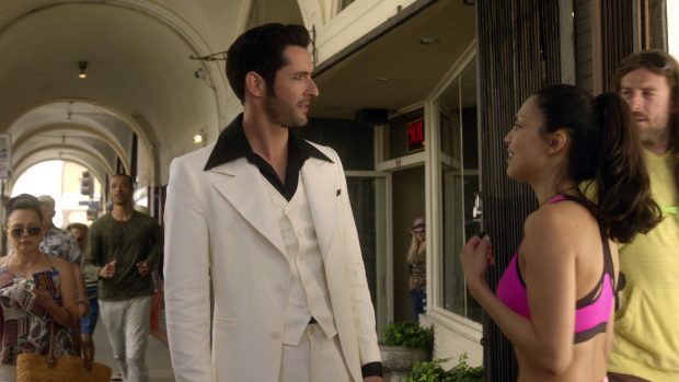 “Blast from the Past” would have been a better title to this episode than “City of Angels?” as that is what we receive this time. The episode goes back some time, before Lucifer met Chloe, before Chloe was even a detective, and before Cloe and Dan went and had Trixie. So quite some time, at least. We find Amenadiel trying to coax Lucifer back to hell yet again, but return he does not. Instead, we witness yet another crime except this one ties both angels and Chloe, Dan and co. together before the alliance that the show always focuses on. Interesting! This episode shows us more of Lucifer’s masculine side, with him having escapades with beautiful women and forever rueing his father. As this all takes place before Lucifer officially meets Chloe, it would seem that all of Lucifer’s self-doubt is far in the future. He is at ease with himself and in love with the mortal world and all it has to offer. We see Lucifer being used as man candy and of course, he doesn’t mind it. He sexualizes himself as usual and has a bunch of fun doing so. It’s crazy how much Lucifer tends to defy the sex-role stereotypes, as he doesn’t have a job, really, and is rarely seen working as males usually would be on TV. The man loves to have fun, and fun loves to have him. The only leadership role he has to his name is that he is the devil, the king of hell more or less. That is perhaps all to be gained from this episode. King of hell, more like king of fun (and perhaps being attractive).