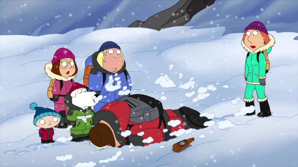 After running into her ex-boyfriend, Ross Fishman, at the grocery store, Lois and the Griffins are invited to attend a dinner at the Fishman’s house. During dinner, Ross and his wife show the Griffins all the impressive vacations they have taken as a family. Peter is jealous of this and when Ross mentions that their next vacation is climbing Mt. Everest, he says that so are the Griffins. Sticking to their word, the Griffins and the Fishmans begin their journey to climb Mt. Everest.
