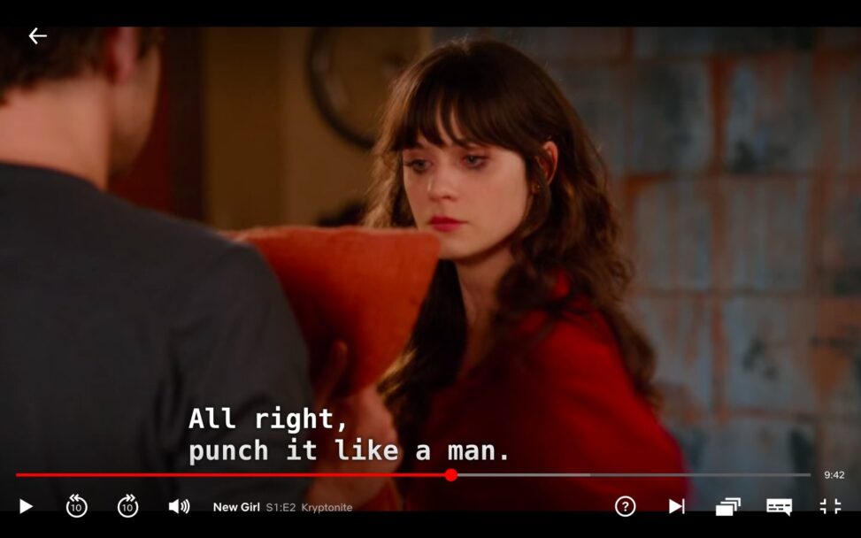 In episode two of season one of New Girl, Jesse is trying to get back her clothes and stuff from her cheating ex boyfriend. She shows up to meet with her ex boyfriend and ends up driving his new girlfriend to the airport. This shows they are showing Jesse as “weak” and “doing anything for a man.” The photo above is when the guys are trying to get Jesse to be strong and they tell her to be strong by “being a man”. This shows the stereotype that women can’t be strong and muscular.