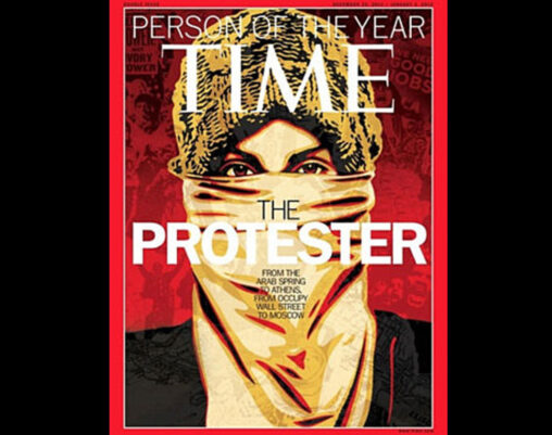 In the 2011 Time Magazine cover for Person of the Year, we see someone who’s covered; a protester who’s face we cannot make out. There are no feautres…