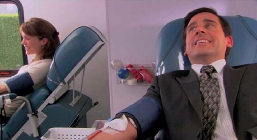Image Credit: https://www.google.com/url?sa=i&url=httpswww.reddit.comrDunderMifflincomments7vq2lti_thought_michael_and_the_blood_drive_lady&psig=AOvVaw2QrPp8nHn6T6sKJuxgkX_V&ust=1636670268637000&source=images&cd=vfe&ved=0CAgQjRxqFwoTCMiFkYXujvQCFQAAAAAdAAAAABAD