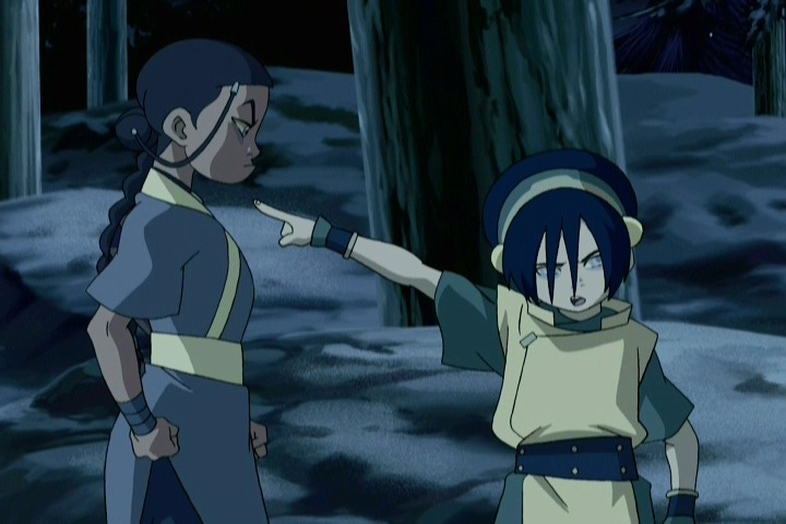 - Toph and Katara talk about setting up camp and how they handle it since they are a team and everyone should pitch in to help everyone. Plus they are arguing with each other since they both come from different areas of life and they is causing a divide