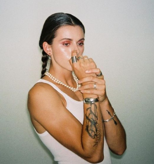 Looking at Lynn Gunn’s personal Instagram, it is clear she identifies and expresses herself in a more masculine way. She keeps her hair shoulder-length and styles it different ways, but she keeps any makeup she wears pretty minimal and natural. There isn’t a single photo uploaded of her wearing a dress or more feminine attire; instead, she wears lots of pants and trousers, cropped tank tops that resemble men’s muscle tanks/tees and undershirts. Her Instagram also reveals a lack of color that is associated with specific genders. She sticks to a monochromatic scale of tints and shades, white, gray, and black- with hints of red or snakeskin pattern here and there.