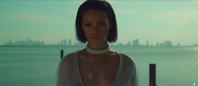 In this music video, Rihanna is seen wearing a sheer/see through dress as she walks around a mansion and pool. She plays into the stereotype that women show off their bodies for attention. Other women are also seen in a strip club showing off their dancing and performance skills while showing nudity. While the women are dancing, men are seen watching them as entertainment. The men are also seen throwing money at the dancers as they dance in a sexual way on the stages. This goes along with the stereotype that women are to entertain and please men.