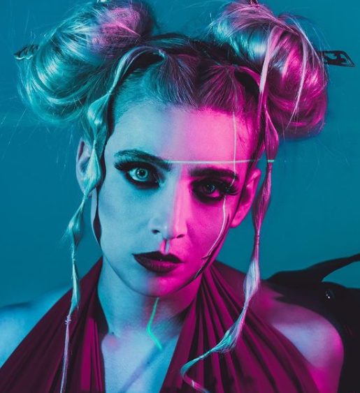 As far as Janine’s public image, I looked into her personal Instagram as well as the official VUKOVI Instagram page to get a sense for how she visually represents herself. She takes on a very alternative way of dressing and presenting herself: recently her long hair has been kept a platinum blonde, however in the past she has dyed it colors that range from less traditionally recognized as “feminine” colors, such as green and blue, to more feminine regarded colors such as pink and purple. She wears a lot of clothes that are more revealing of her feminine figure such as crop tops, mesh tops, and dresses. In nearly every photo she wears expressive, chunky jewelry, and colorful glittery makeup. Overall, it can be seen Janine has taken a feminine approach to a darker, grunge and rock and roll inspired look. It is clear that Janine has used her voice as a alternative rock singer to challenge what the media has reinforced as feminine behavior by demolishing the standard to stay silent, submissive and passive.